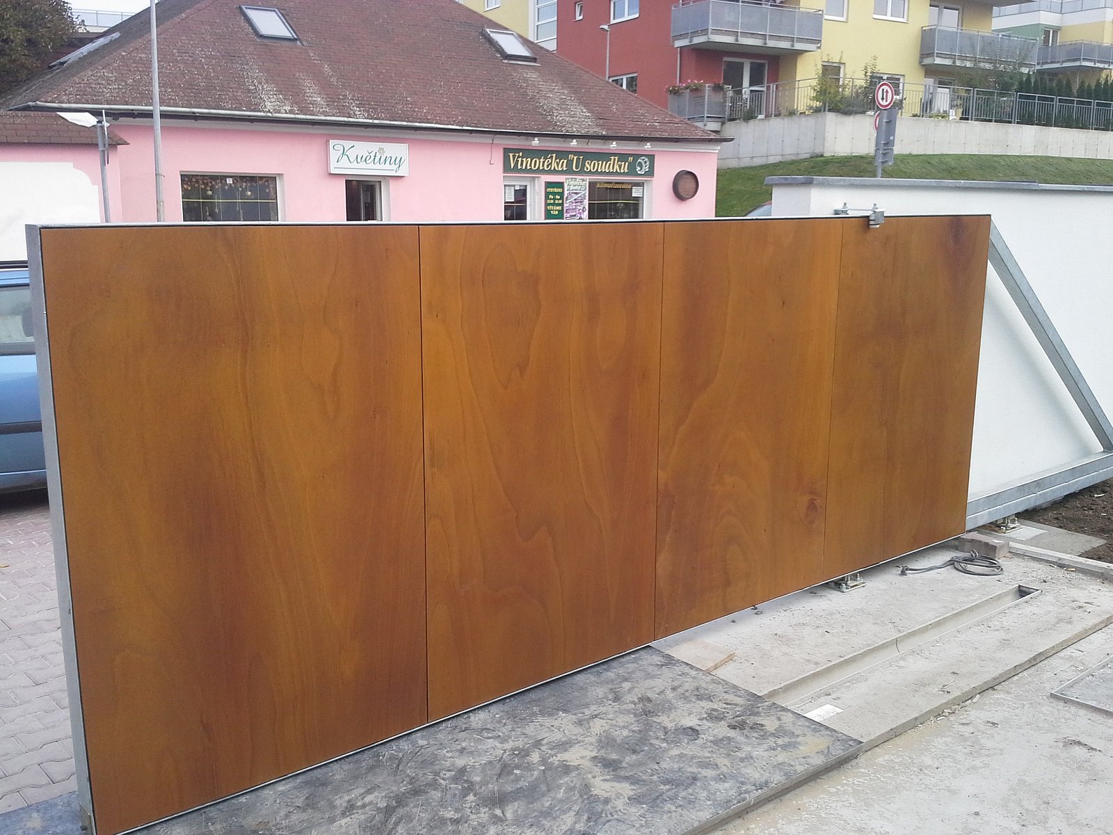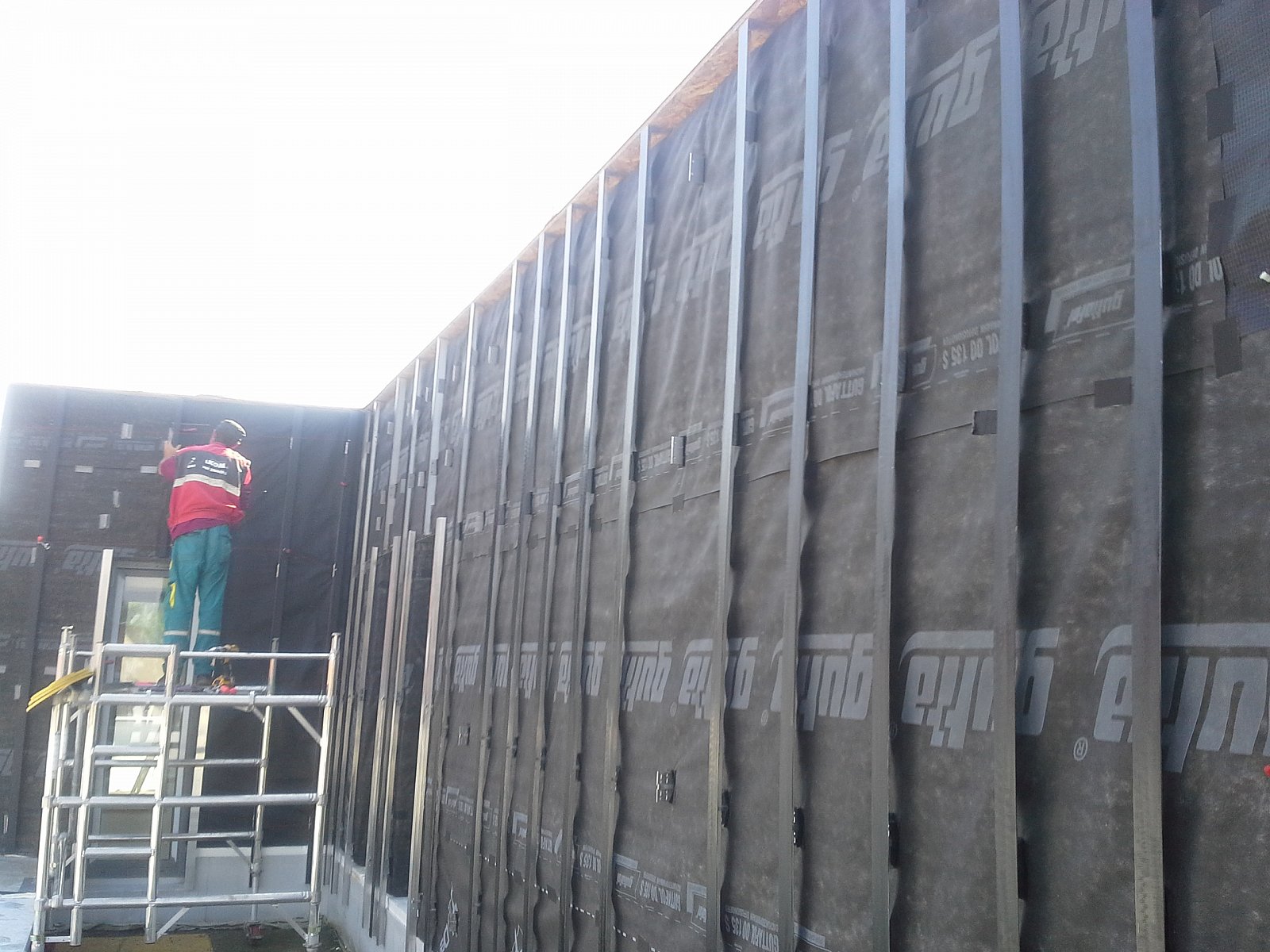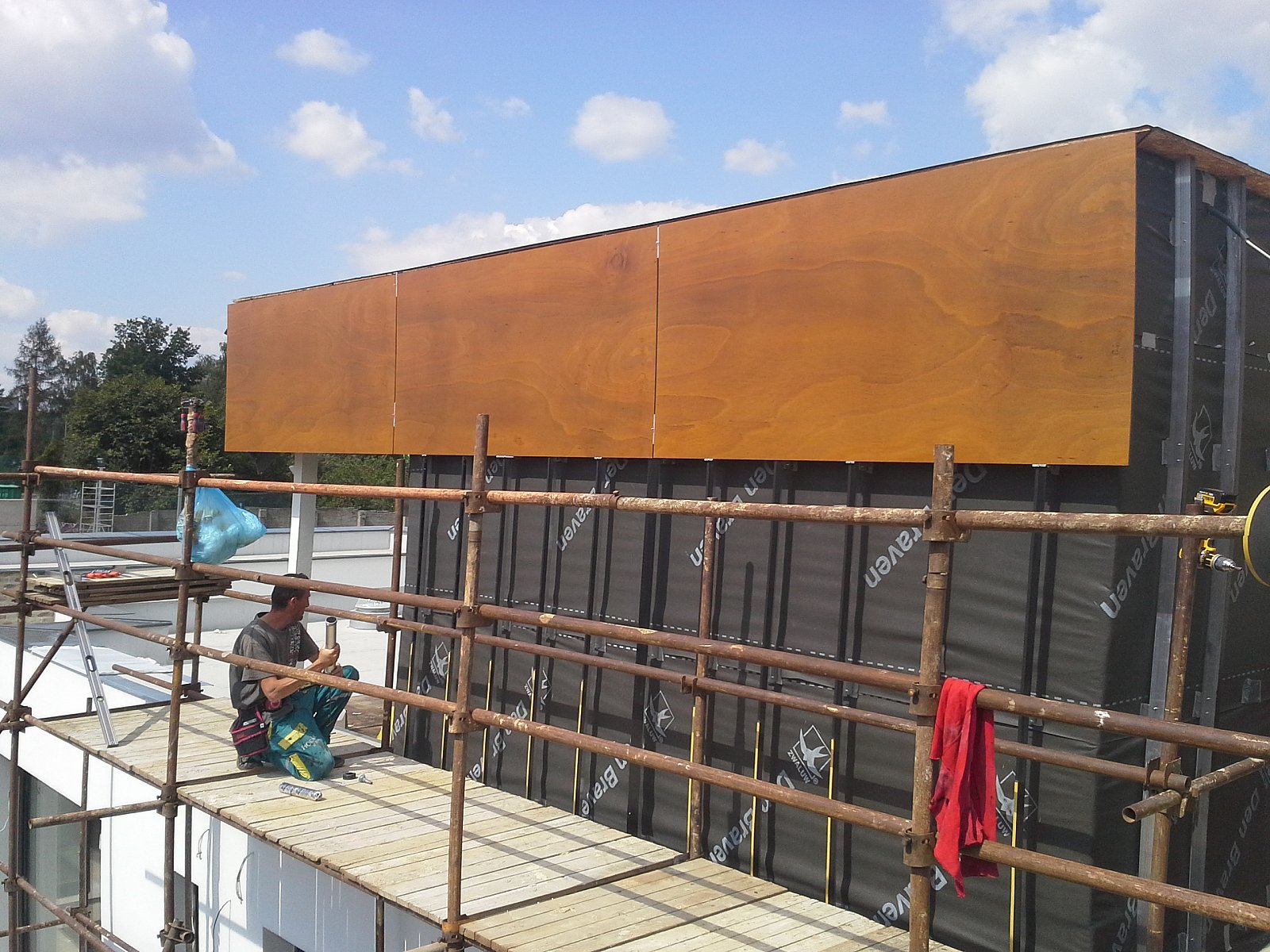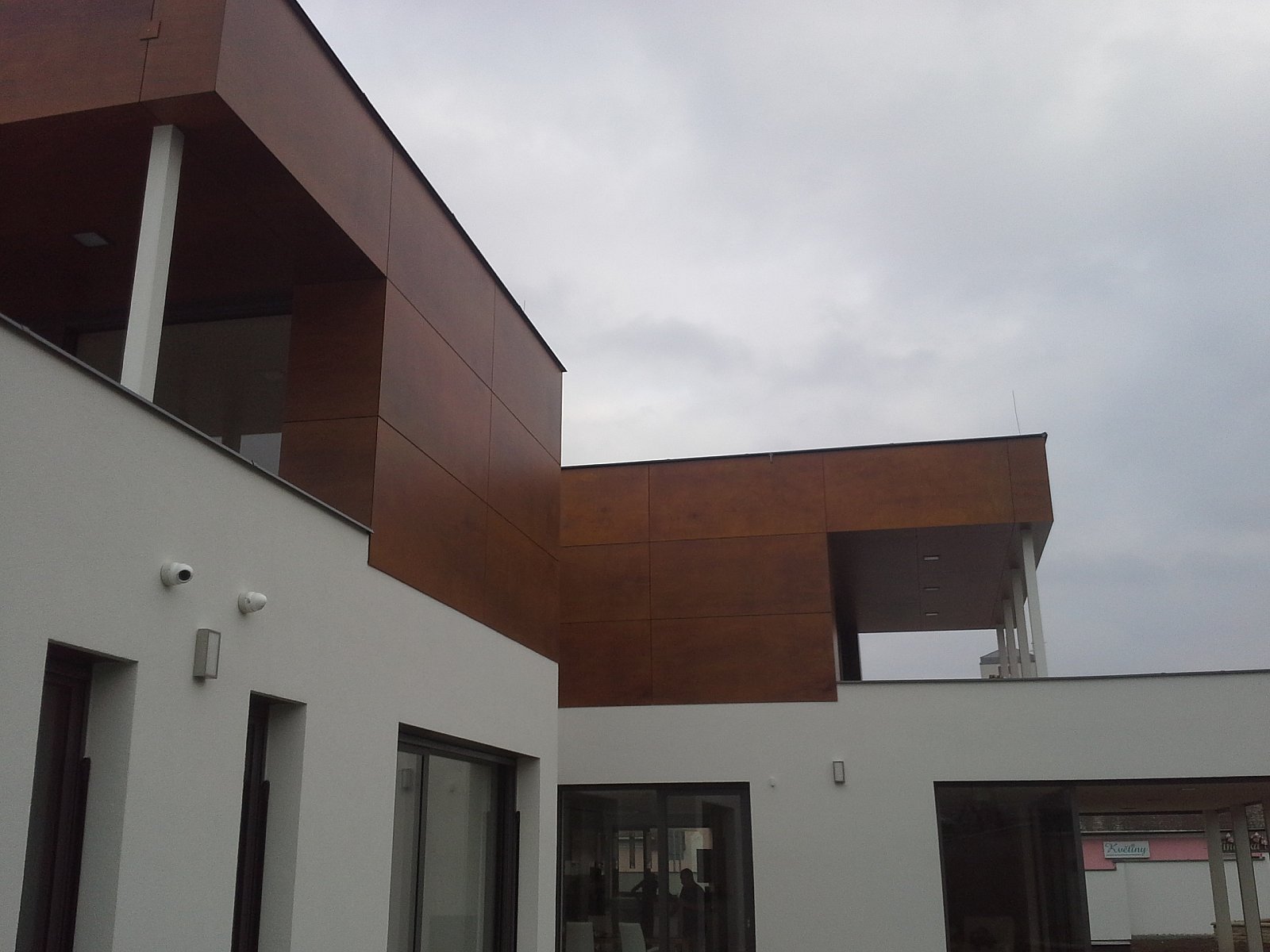 Realizace RD Praha Kbely 2014. Parklexová fasáda odstínu Copper, uchycená lepením na AL konstrukci.