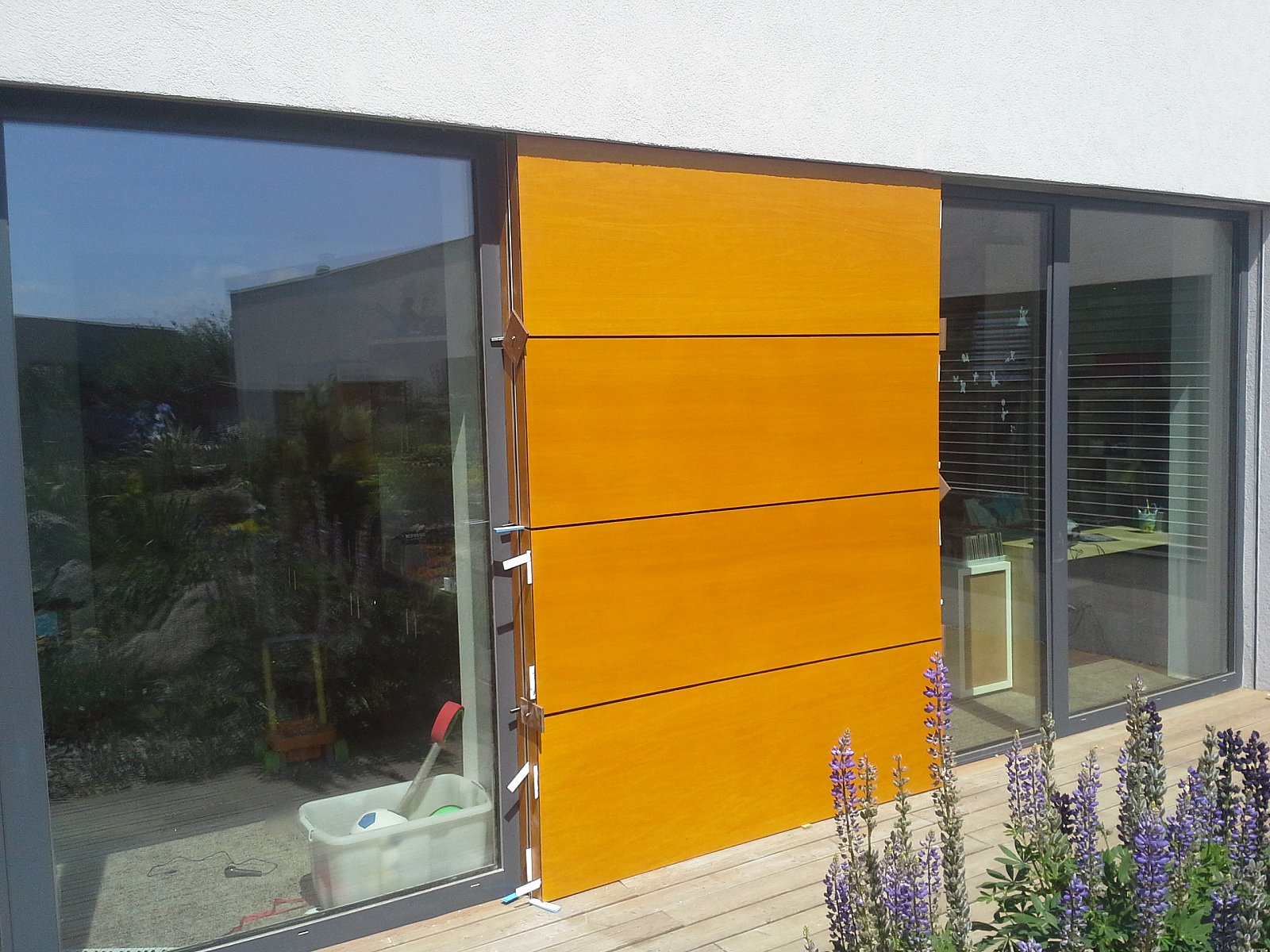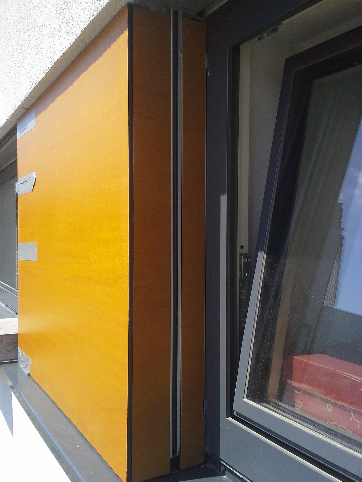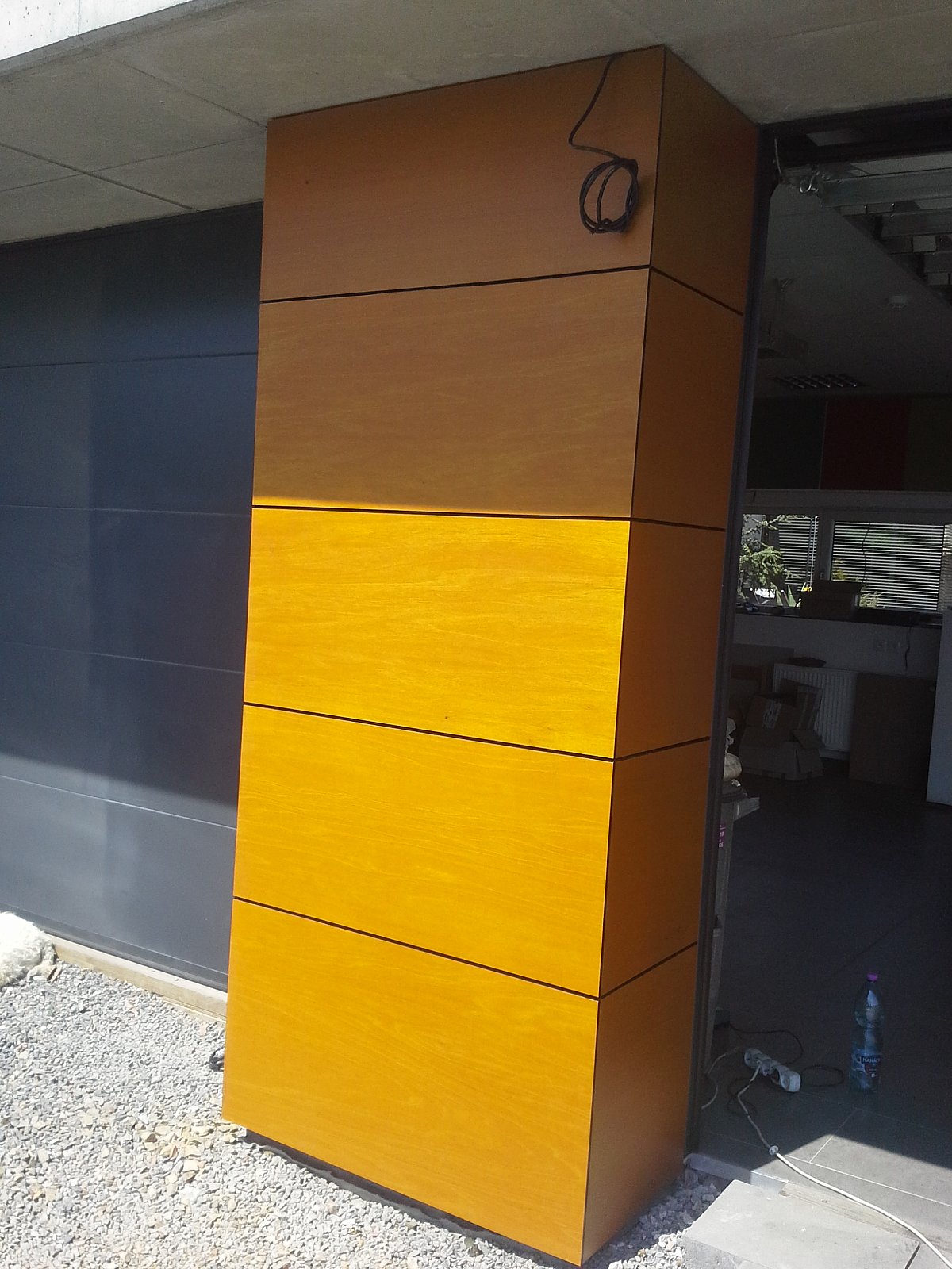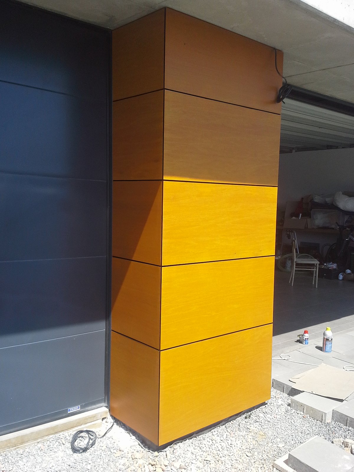 Realizace parklexové fasády na RD Moravské Budějovice 2013. Obklad Parklex Gold, uchycen lepením.