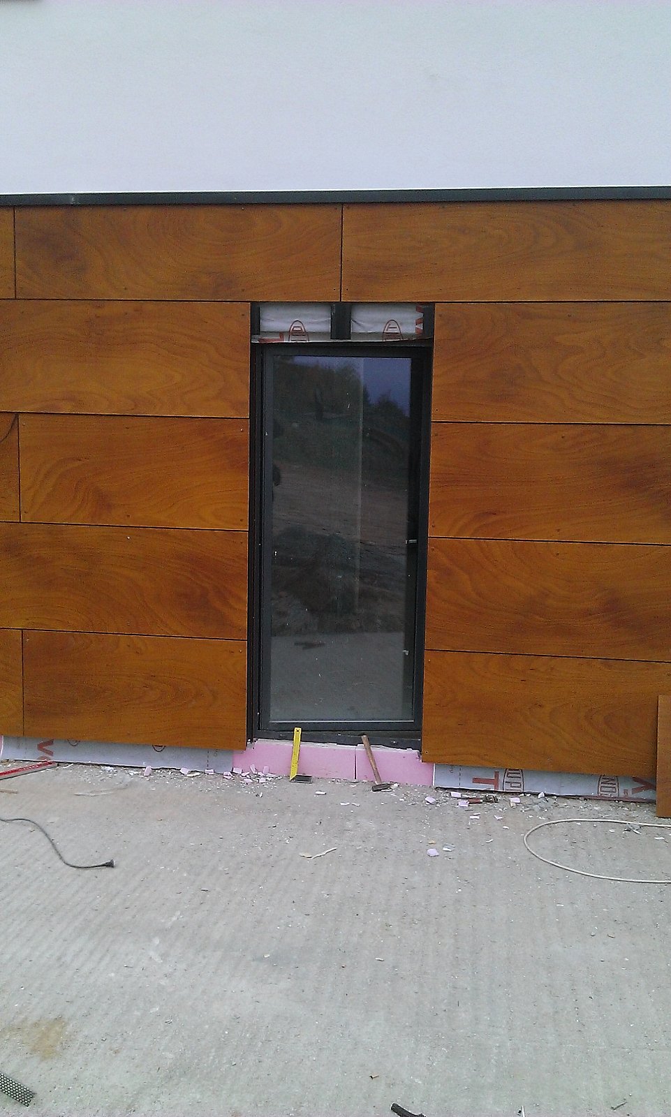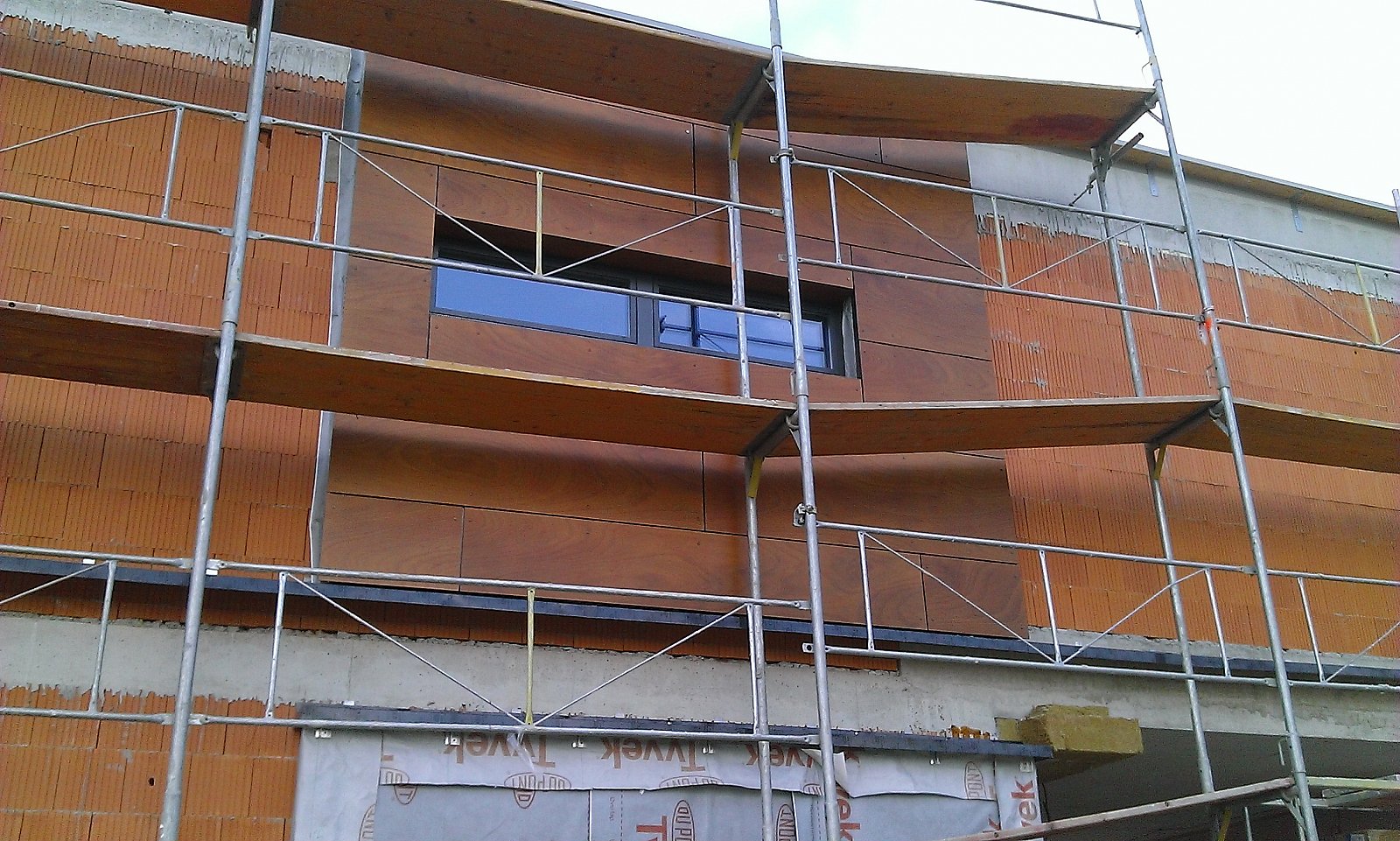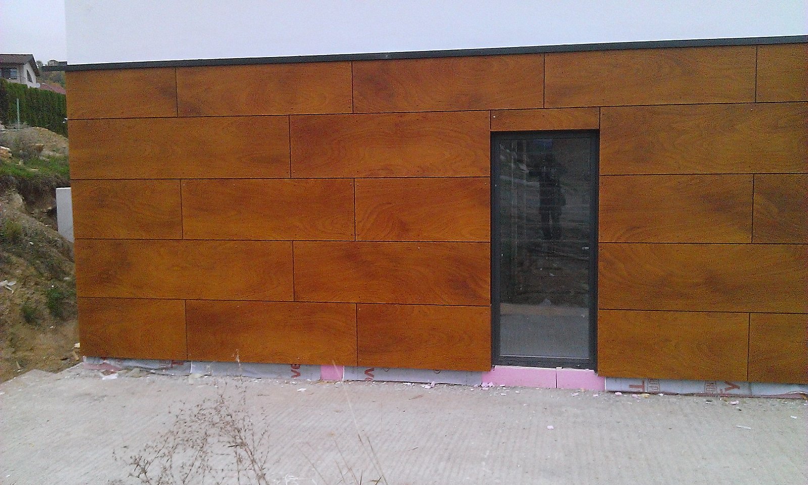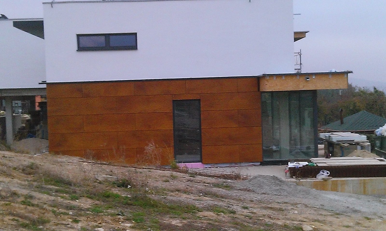 Obklad Parklex Copper, upevněn velkoplošnými nýty.