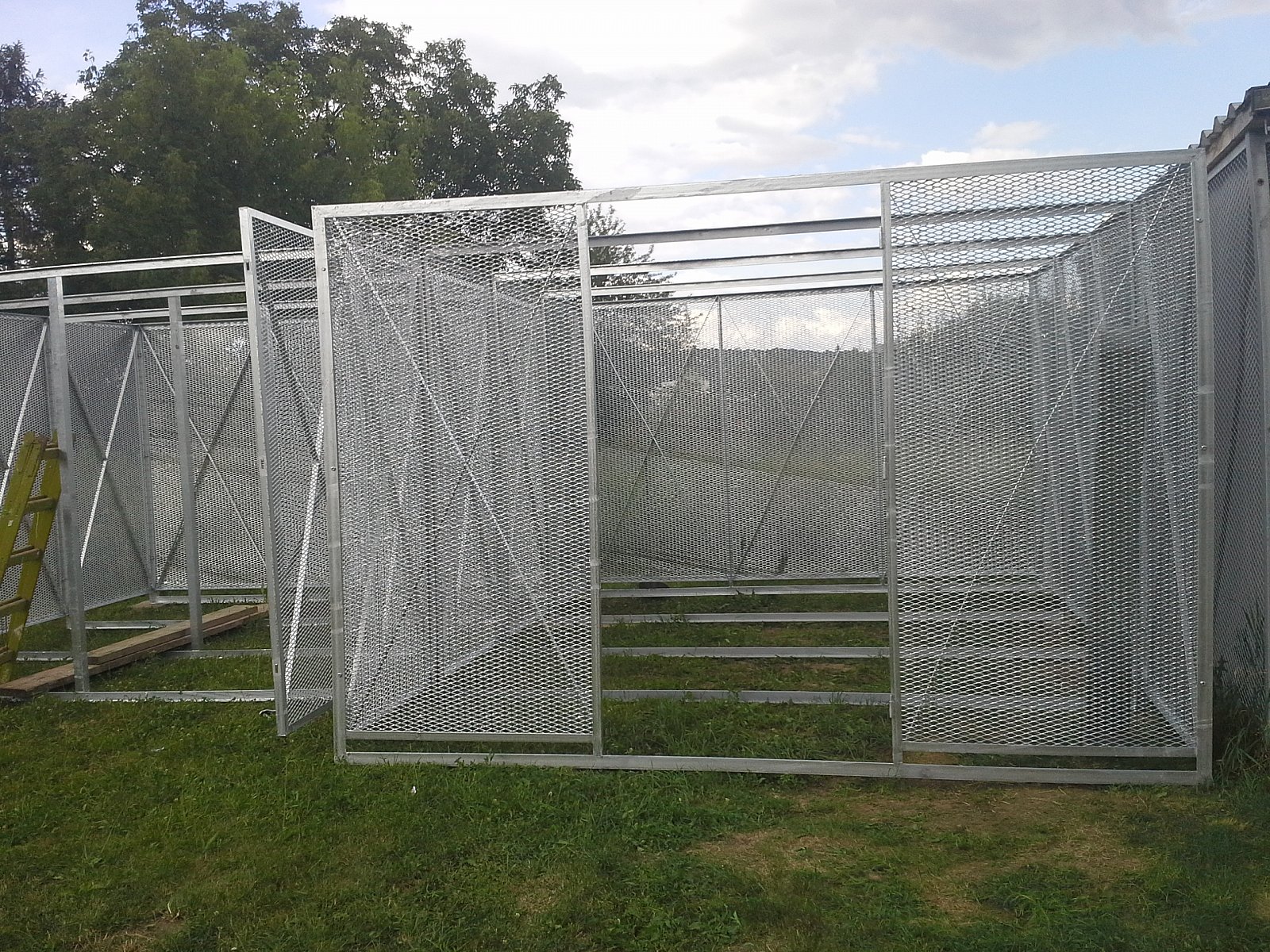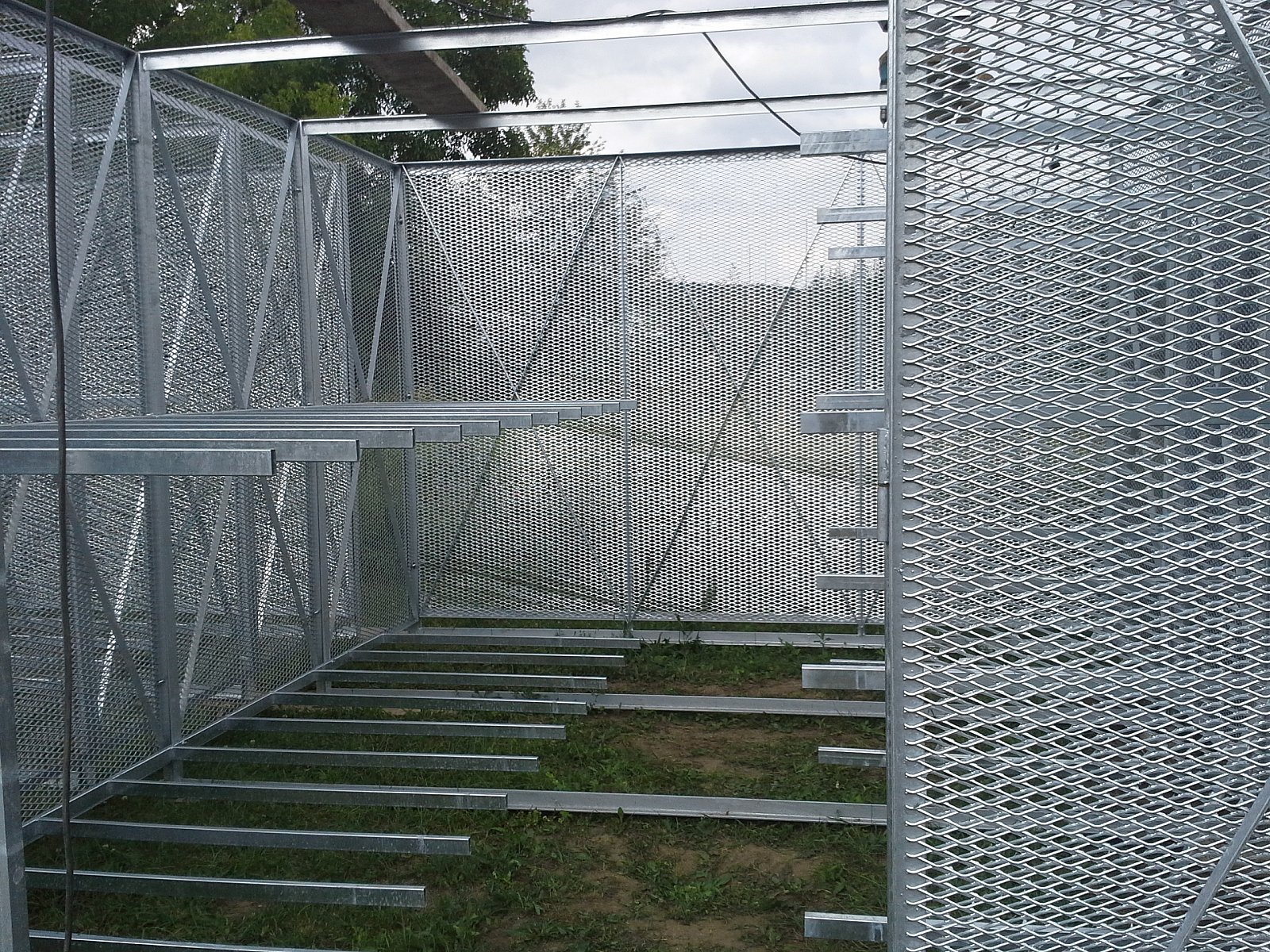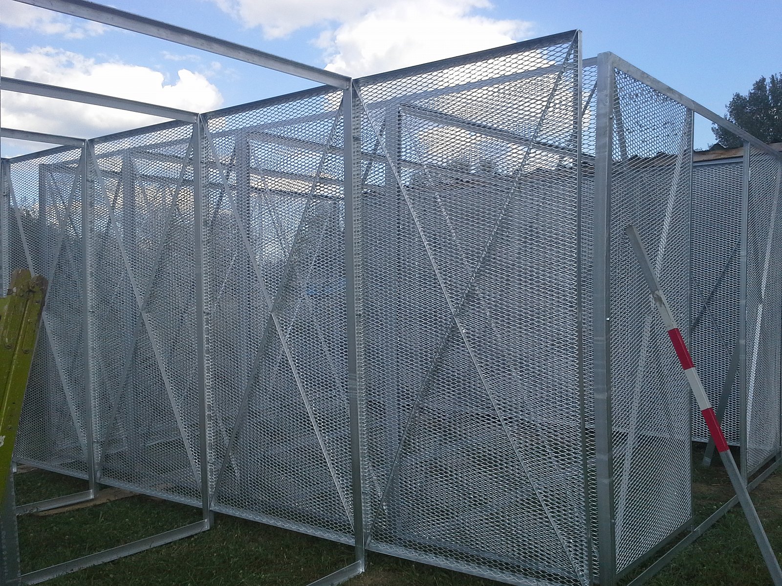 Pozinkované konstrukce opláštěné tahokovem, sloužící k uskladnění lodí.